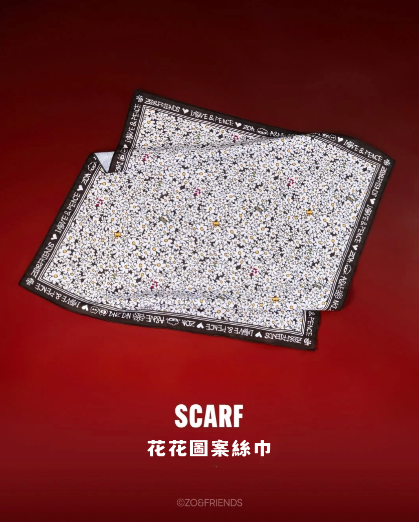 ☁️ ZO&FRIENDS – SCARF 角色圖案純棉方巾