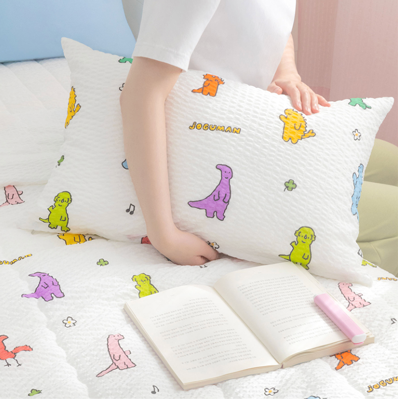 JOGUMAN x NARA HOME DECO Daily Seersucker 枕頭套裝 採用清爽立體的 Seersucker 皺皺面料,表面帶有自然凹凸紋理,觸感更輕爽,夏天或冷氣房使用更舒適。